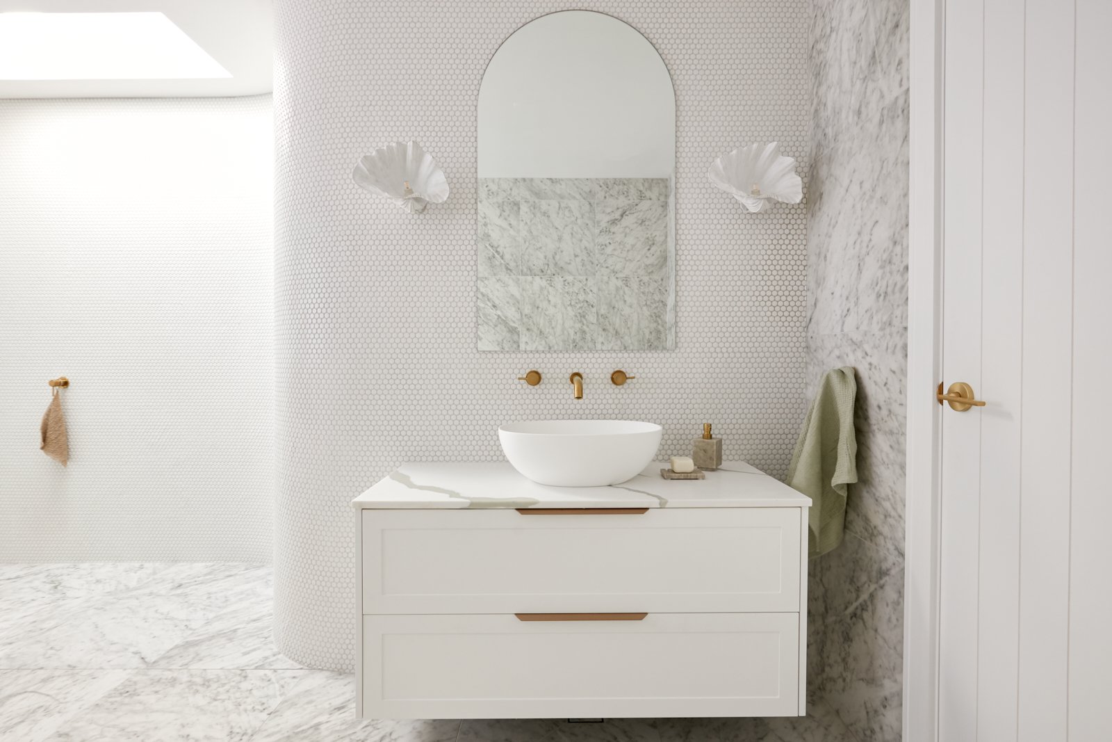 Don’t lose sleep wondering how you’re going to match the tapware and door hardware everywhere in your home because the short answer is, it doesn’t have to match! As long as the overall style of your hardware and tapware matches throughout your home, you can select different colours in different rooms. Want proof? See how we used different coloured tapware thorughout Bonnie’s house #House8…