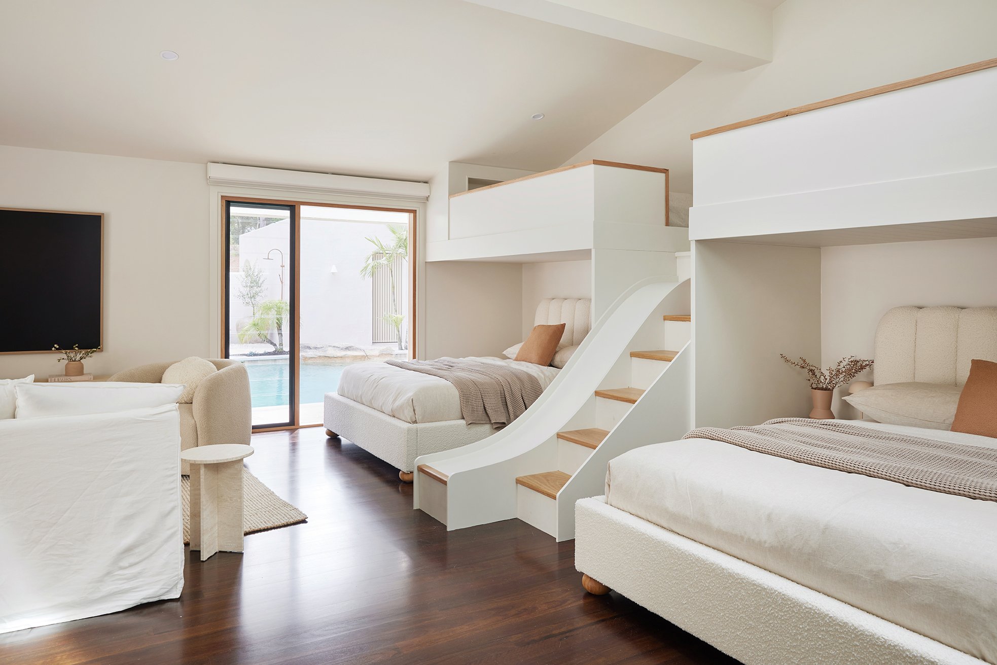 From king-sized bedrooms with private ensuites to a kids' rumpus room that’s next-level cool - think bunk beds and a built-in slide - every inch of The Ambers has been designed for maximum comfort and entertainment. Days here are spent lounging by the pool (with a slippery slide, no less), battling it out on the tennis court, or gathering around the firepit for backyard dining under the stars.