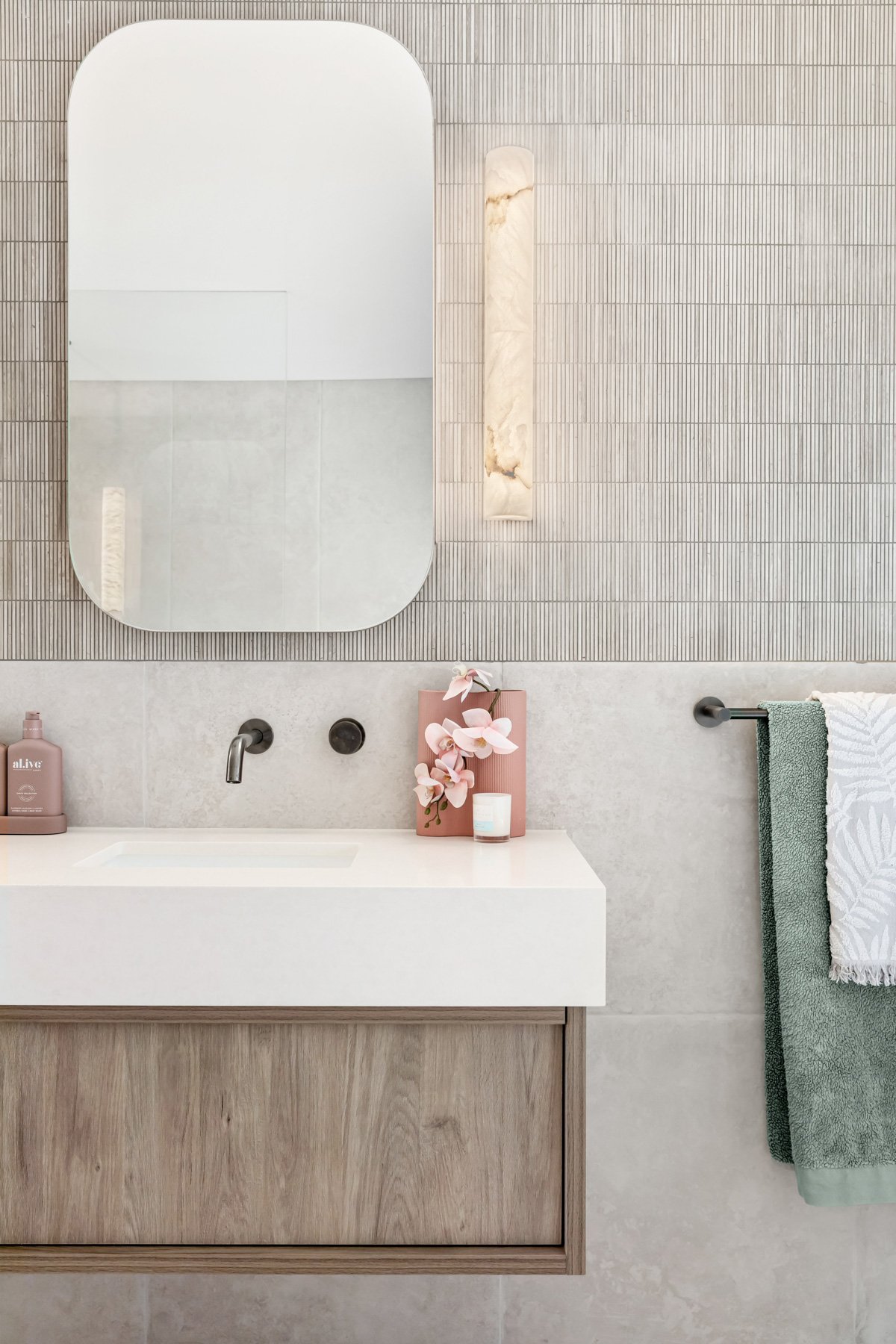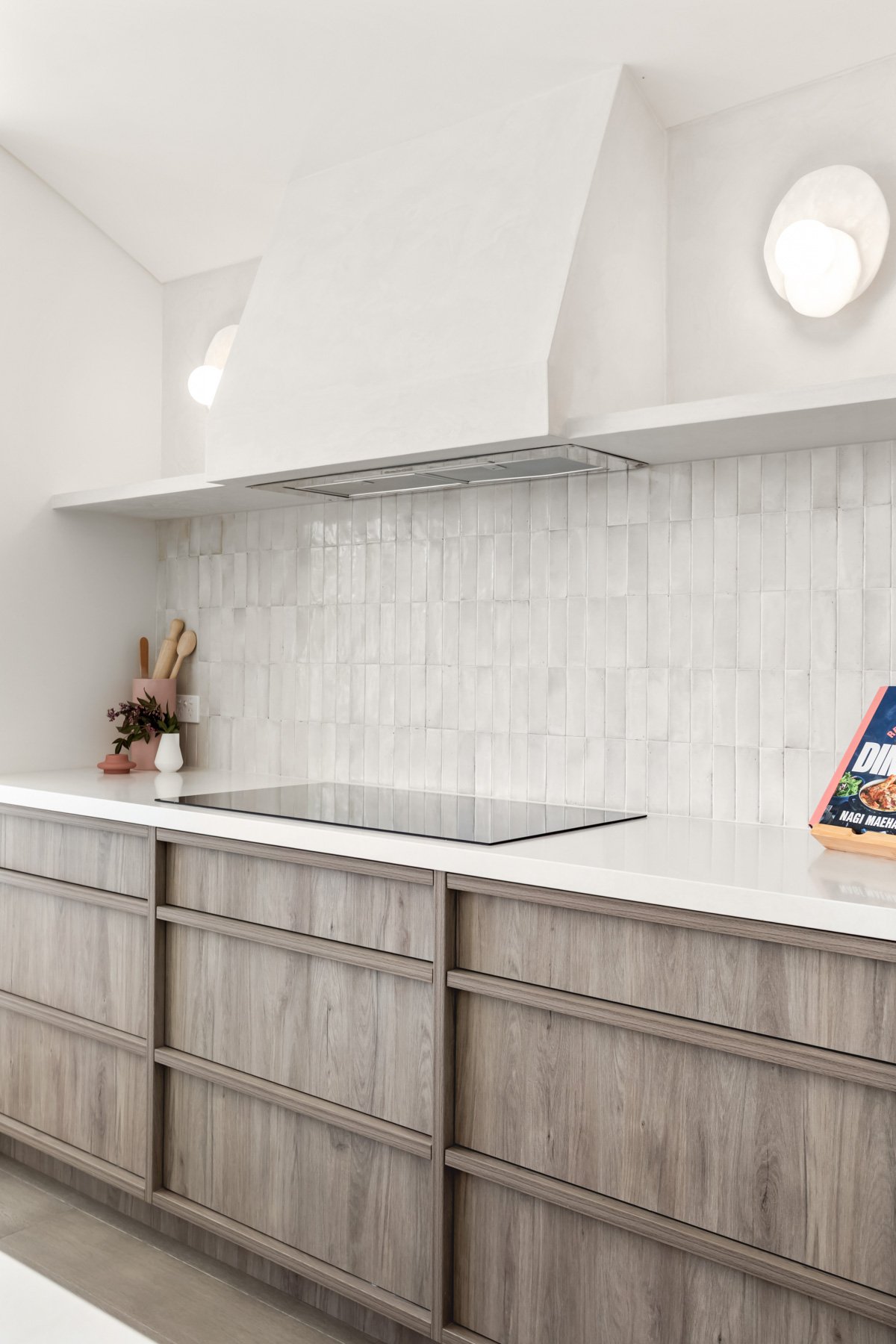 She leaned into the Reno School discounts too, giving special shout-outs to Olive Et Oriel, who customised two prints for her space, and Veneer Stone, who supplied the stone and supported her on-site throughout the process.
