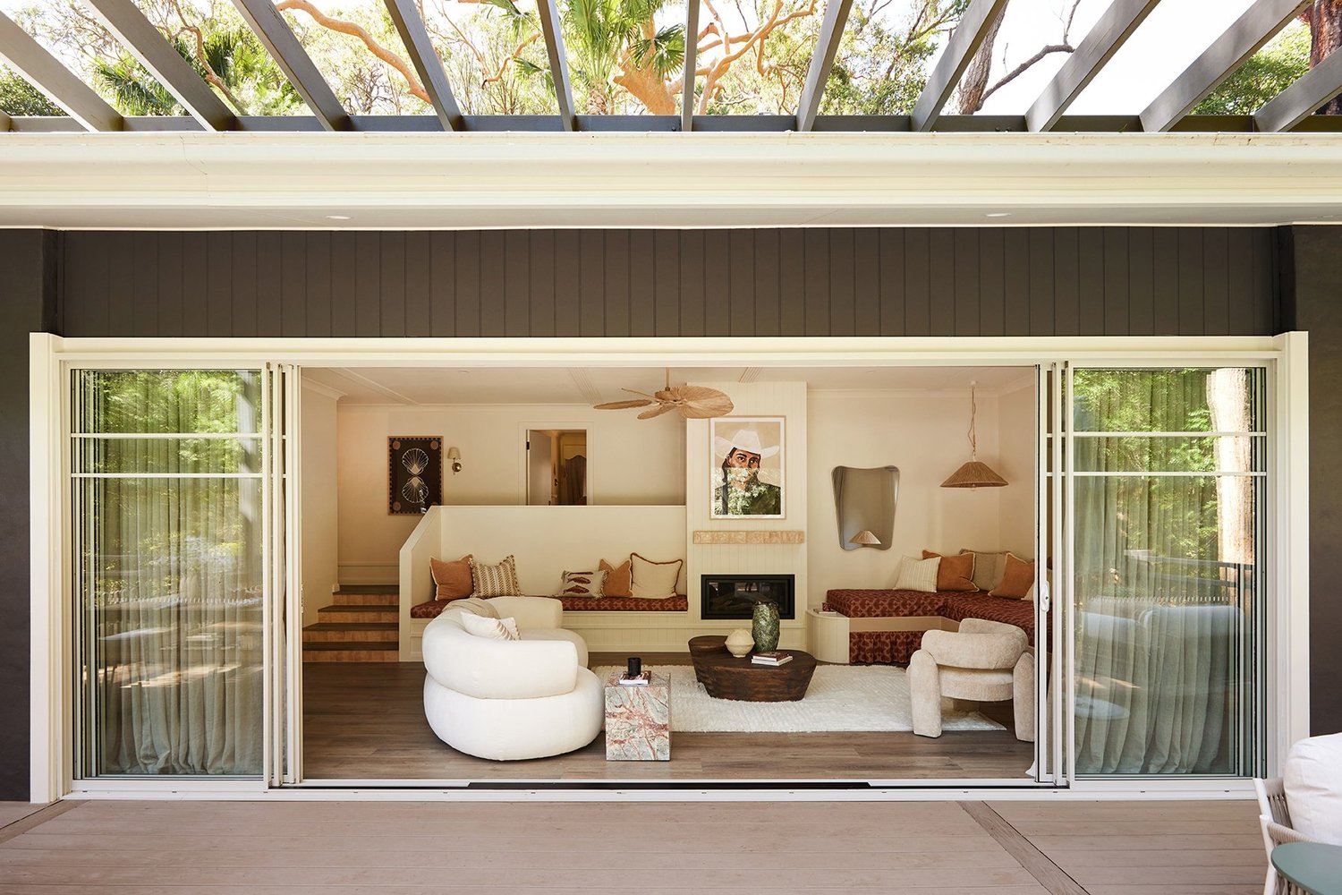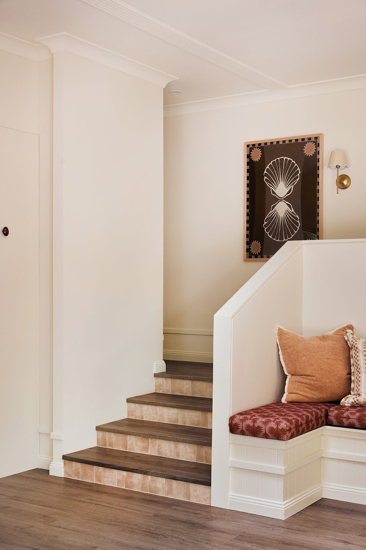 We carried the same Amber ‘Hue’ Gloss tiles used in the kitchen splashback onto the risers, creating a subtle but super-cute colour moment as you move from the living spaces to the bedrooms and bathrooms. We loved this detail so much that, when you’re onto a good thing, you repeat it - this time on the fireplace mantle. It’s these little moments of repetition that help a home feel connected and thoughtfully layered from room to room.