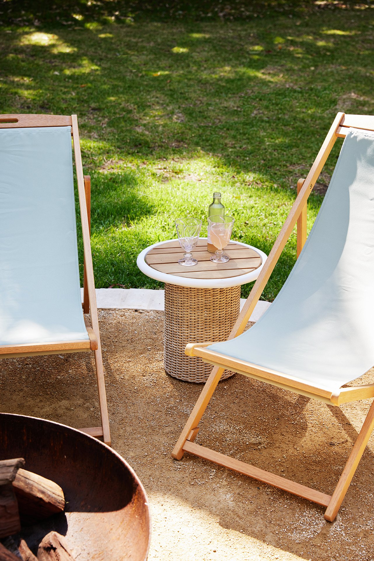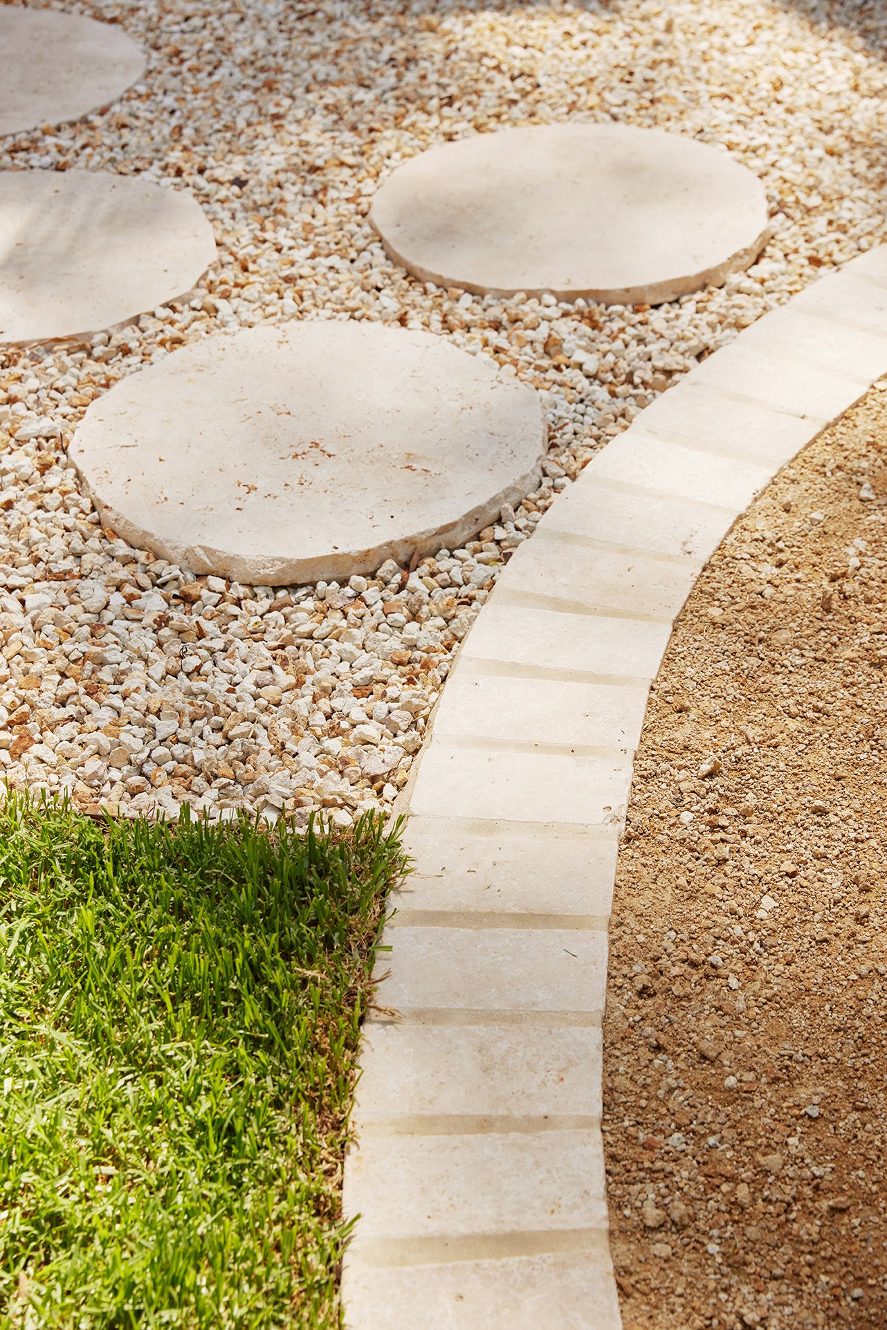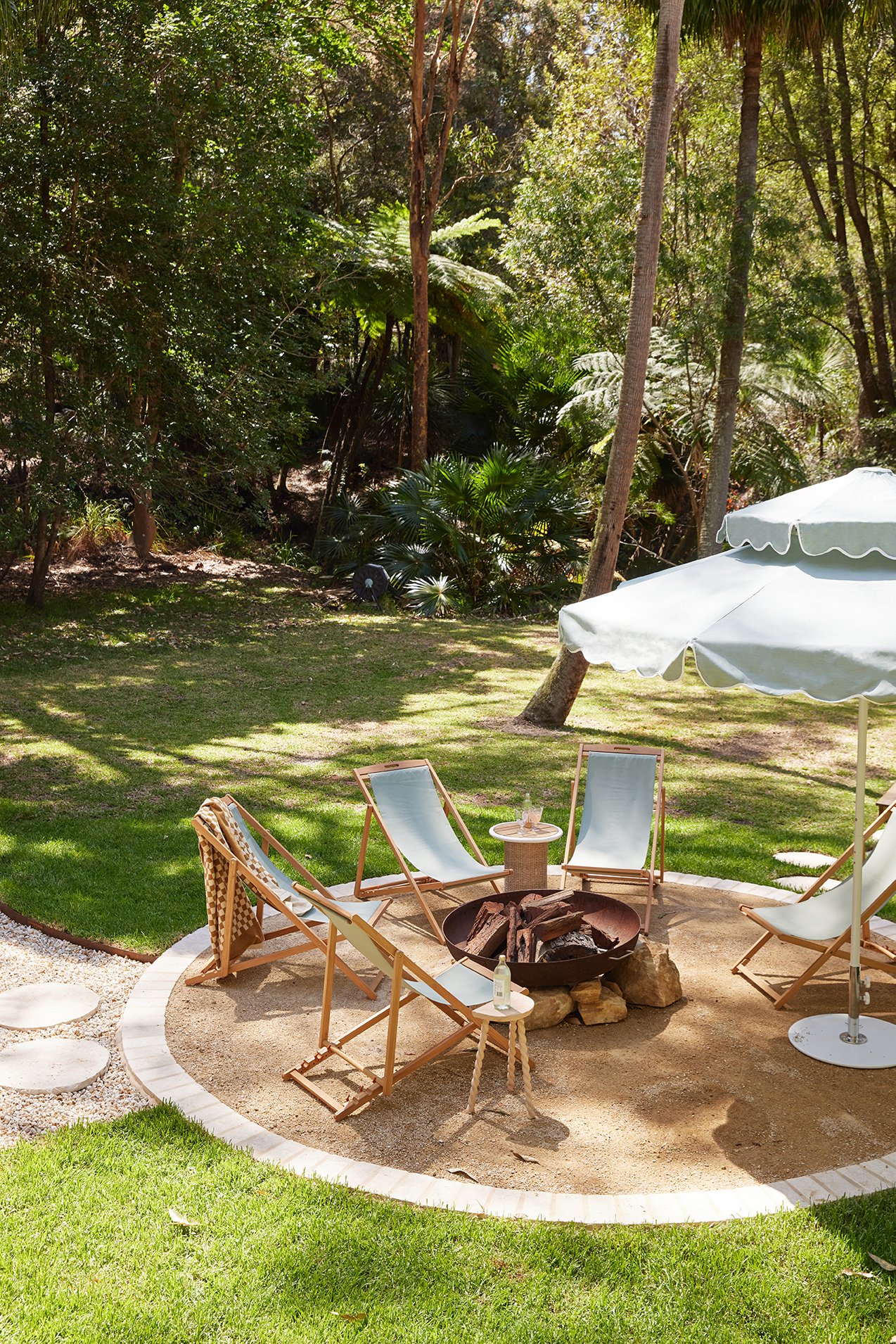 Outside, Travertine Pavers in Ivory and matching stepping stones guide you through the garden and frame the firepit zone. Their natural variation keeps everything soft and earthy, helping the transition between inside and out feel effortless – just as a holiday home should.