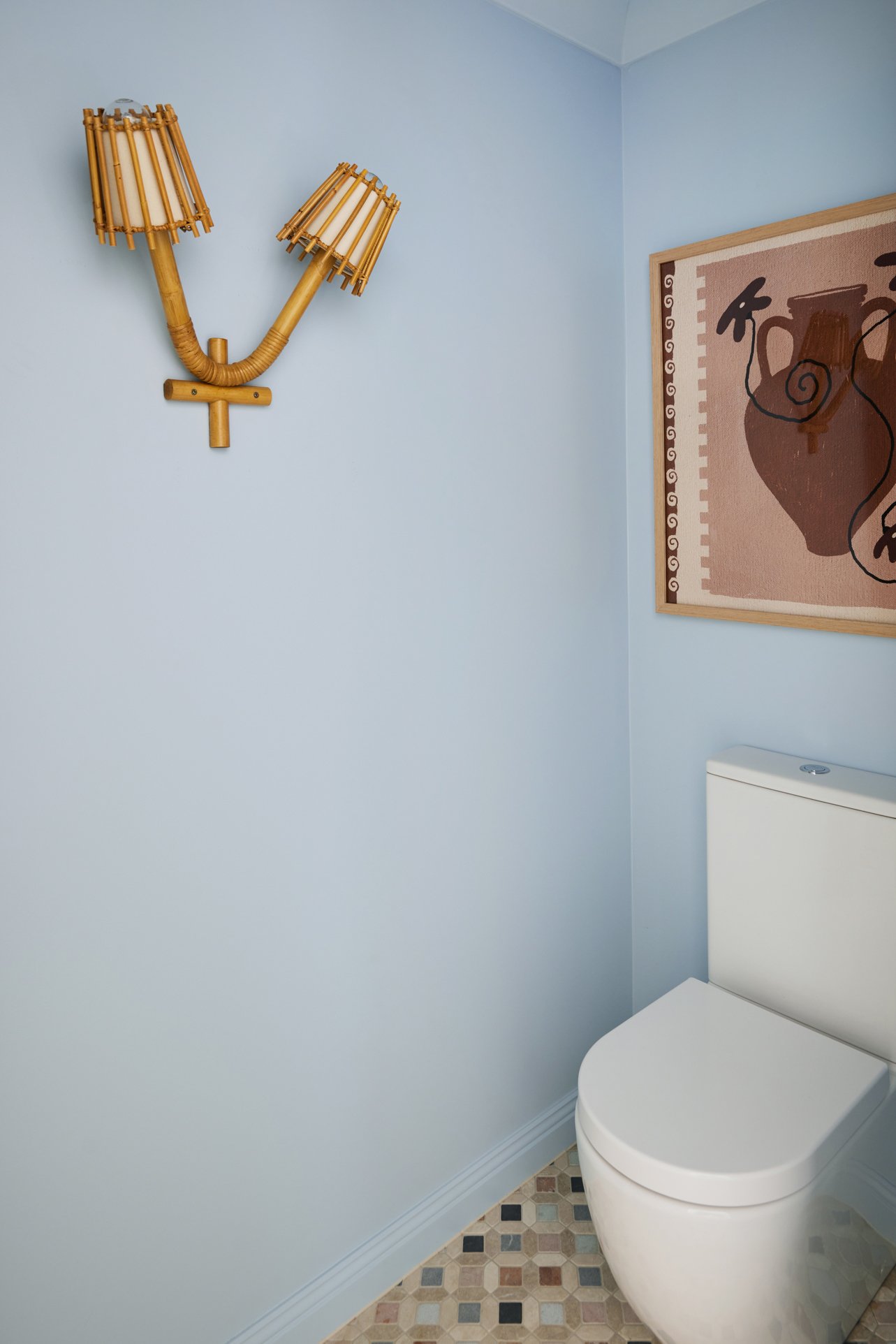 The powder room is where we had a little extra fun. The floor features ‘Zahri Mosaic’ tiles in Natural Multicoloured (available in-store), bringing instant personality and making this small space feel special and memorable.