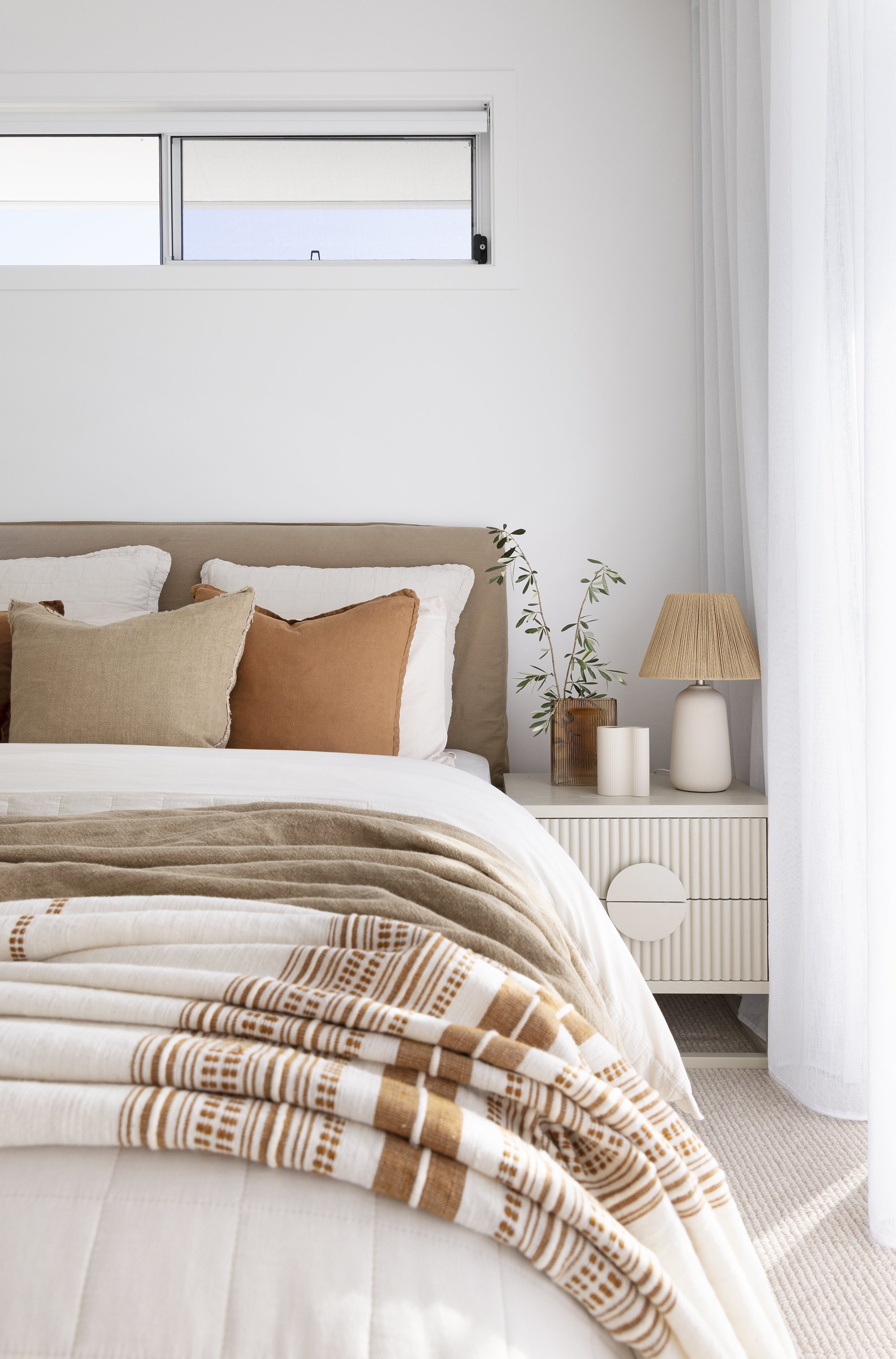 5. Incorporate cohesive decor: Accessories and decor items can tie a room together and add a personal touch. Choose decor that complements your colour palette and design style. For example, my bedside lamps are a beautiful crème colour that works perfectly with my quilt cover.