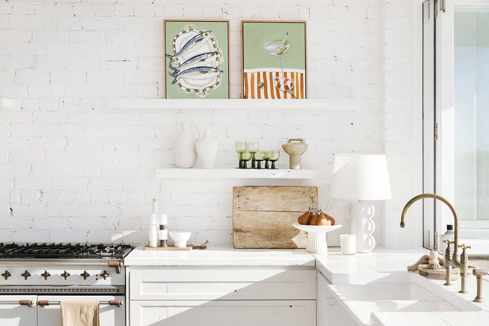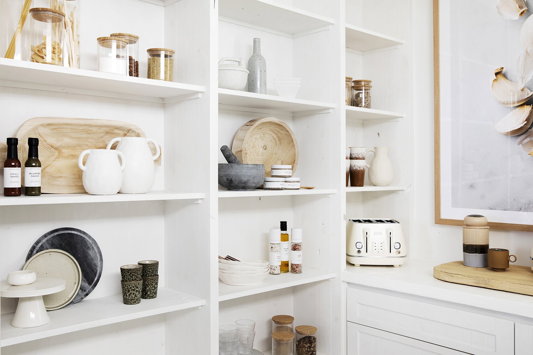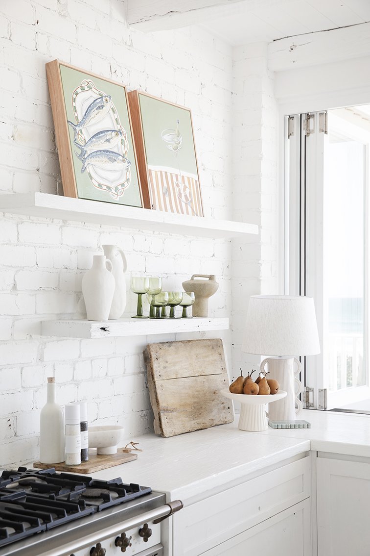 Bon will show you how we styled the kitchen, which all began with the art, kitted it out with a barista style coffee machine (a holiday home essential!) and how open shelves in a butler’s pantry can be styled to match the colour palette.