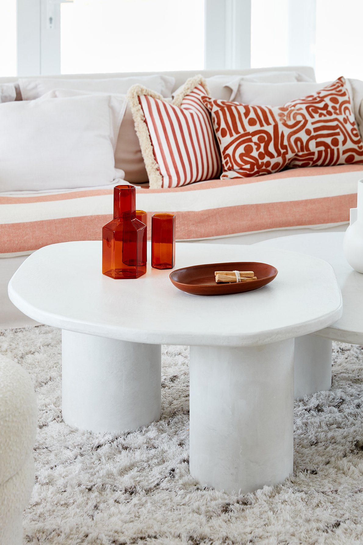 We’ve seen coffee tables absolutely packed with styling items but we prefer leaving some breathing space on the table so it doesn’t feel too busy. And, of course, you also want the table to be practical, so there should be enough room to put a glass down or accommodate family activities.